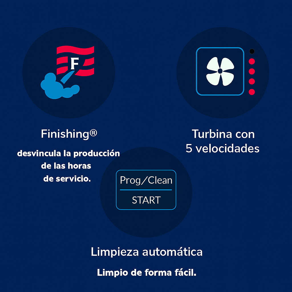- Hasta 100 programas de procesos de cocción de hasta 12 pasos, para poder repetirlos infinidad de veces.